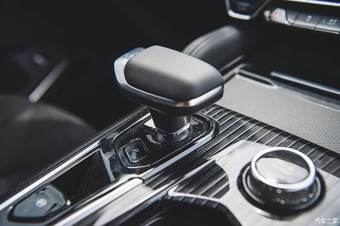 矮T型的档杆握持感也不错,各档位切换清晰利落,就是这块区域所用的高亮漆面让我不是特别喜欢,肉眼可见的指纹收集器,做了竖条纹装饰的地方略有改观