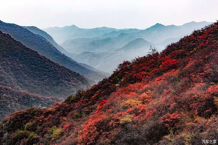 秋天羊大垴最好看的是红叶,满山遍野的全是红叶,浩浩荡荡气势恢宏。