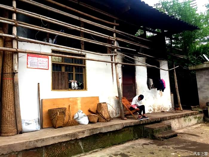 其母亲坐在门口,他们一家就那一小间房屋,母亲因病致贫,父亲靠砍竹子赚钱。在中国很多家庭都是因残因病致贫,国家的扶贫任务还很重。