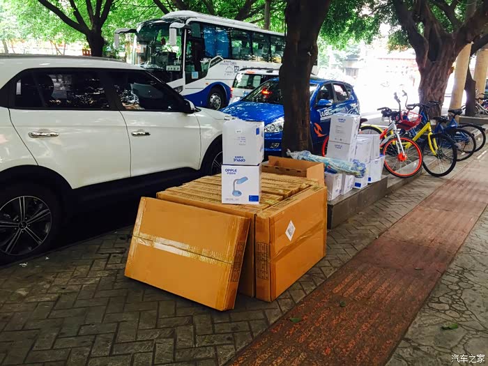 总的物资,主要是一些学习用品和生活用品哈,请忽略旁边的单车