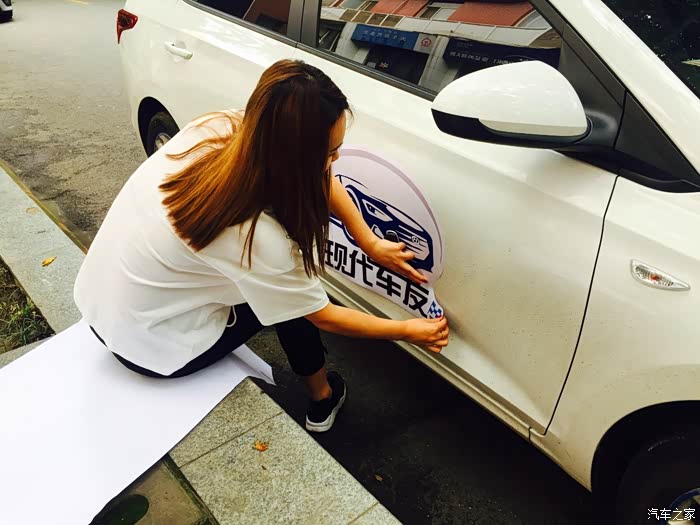 出发前准备,这是哪个美女亲自在贴车贴呢,各位帅哥都不绅士点!