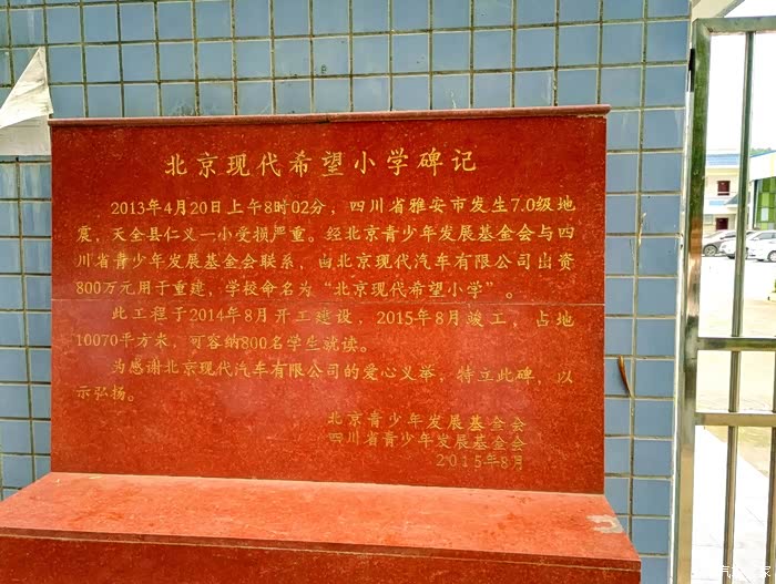 经过4个多小时的时间,我们终于到了仁义乡小学,原来这个是现代公司捐助的,为企业的公益行为点赞!