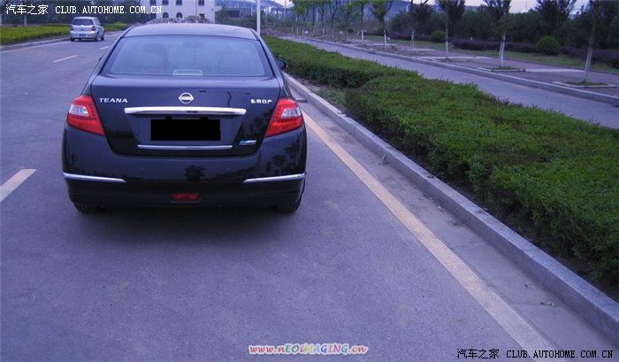 今天跟老婆去沃尔玛,我挺好车,下车看见我旁边的天籁贴着3.5的,我一看屁股就开始露陷了,因为它的屁股跟公爵完全不一样,虽然它也接了两个尾喉,但是因为没有开孔,尾候是往下的,一看就特别的明显,我再一看轮毂**跟公爵完全不一样,一看就是2.0或2.5领先的轮毂,再一看天窗完全跟公爵的不一样,前脸也不一样,因此我确定这是一辆2.0或2.5领先的车,最后一看方向盘,呵呵!果然是一辆2.0的,因为方向盘右边没有多功能键,2.5领先两边都有的,我简直无语啊!这么说这个人既然想装B,但是它功课也做的太少了,或压根就没有做什么功课,就是直接在2.0那个空白处贴了350XV,下面贴了个V6就算好了!我简直无语啊!实在不明白是贴给谁看的,如果贴给不懂车的,你贴个850他们也不知道是什么意思,那么你如果贴给懂车的人看,那么一看屁股就看出来了!我想你即使想装350公爵的话,那么你至少要买一辆2.5公爵吧!这样把2换成3,侧面贴个VIP,至少看着还像一点,那天还看见一辆520贴了530,一看屁股就看出来了,因为它的屁股是右边单出,520的标志!呵呵!真不知道这些人是怎么想的,实在是无语了!上图就是2.0的,下面是3.5的!屁股完全不一样吧!呵呵!