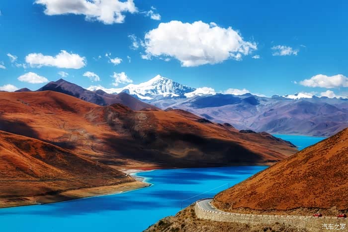 西藏浪卡子县羊惹雍措,湖水蓝得很不真实。
