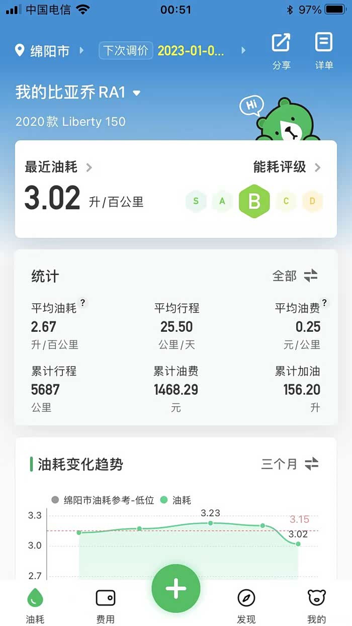 车子表上到1000公里二次保养后就随意骑了。没有刻意省着。跑长途一定要全合成机油,不要省。