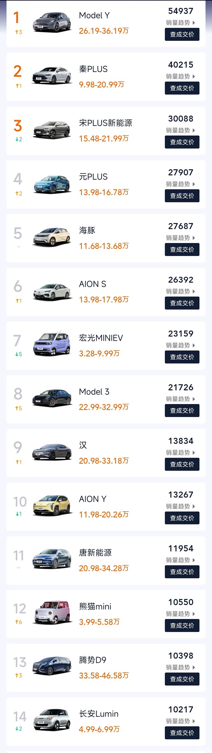 三月份新能源销量排行榜出来了,竞争激烈啊