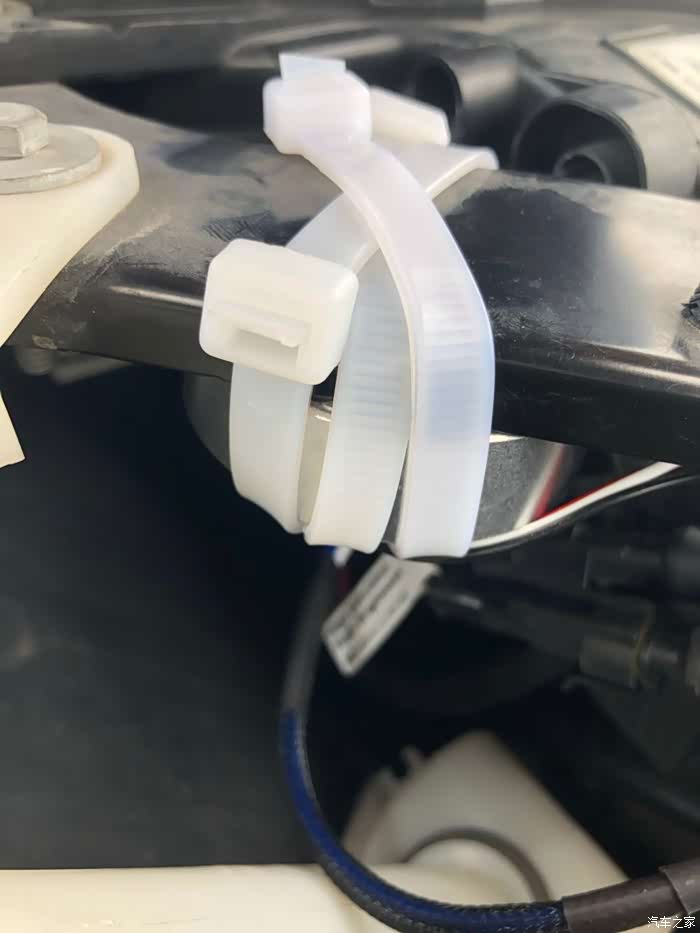 安定本身带安装螺丝孔,暂时在机舱里没有找到合适的位置,索性就先直接用扎带将安定绑在大灯支架上了