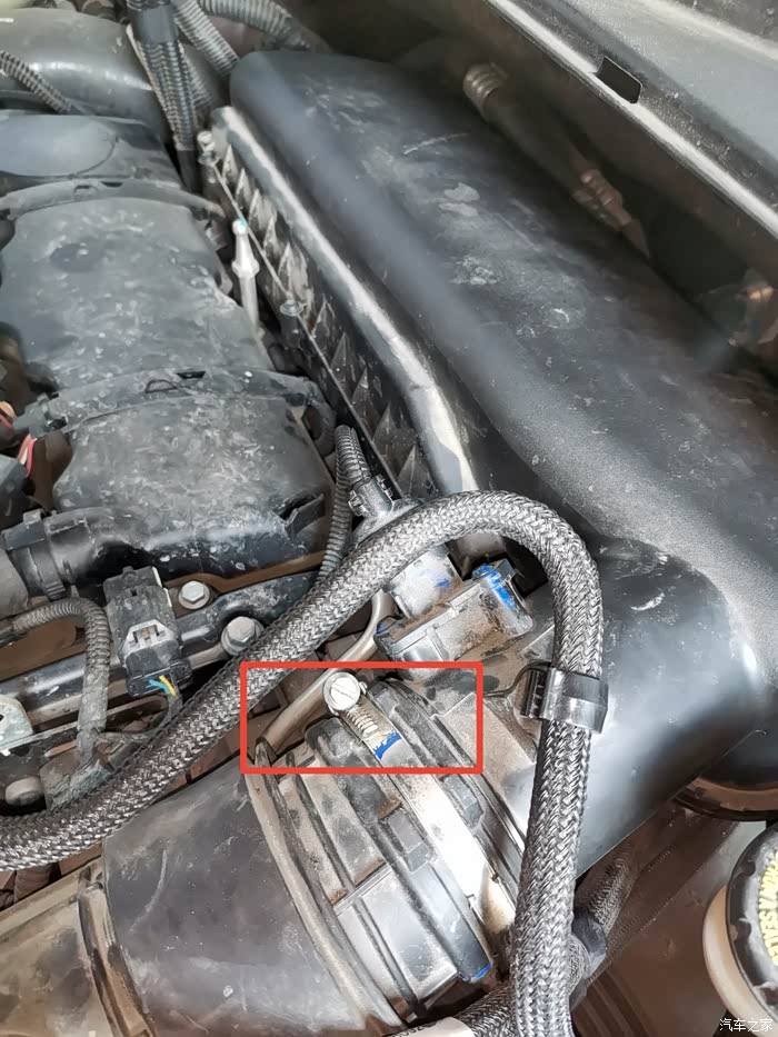 取下后如下图,安装回去的时候先45度斜向上将盖子往靠近驾驶室卡扣按进去,然后再拧螺丝,不然卡不住。