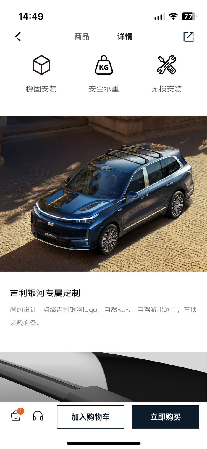 )再到自己爬车上去确认,最后到网上看到商品出教程,所以也可以算是相当曲折了。最后知道提车后官方商城出了行李架横杆后才确定了能不能装(直到这个过程问销售顾问和店里面的技术经理也还是一问三不知