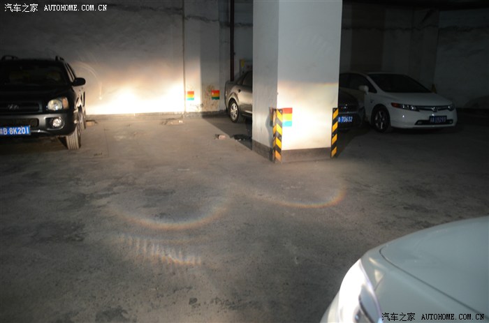 此为第二天,多下了一层车库,距离20米左右,所以看上去不如第一天的欧司朗那么明亮,其实要亮一些。估计还是因为原车灯是飞利浦,所以聚焦神马的要好一些。
