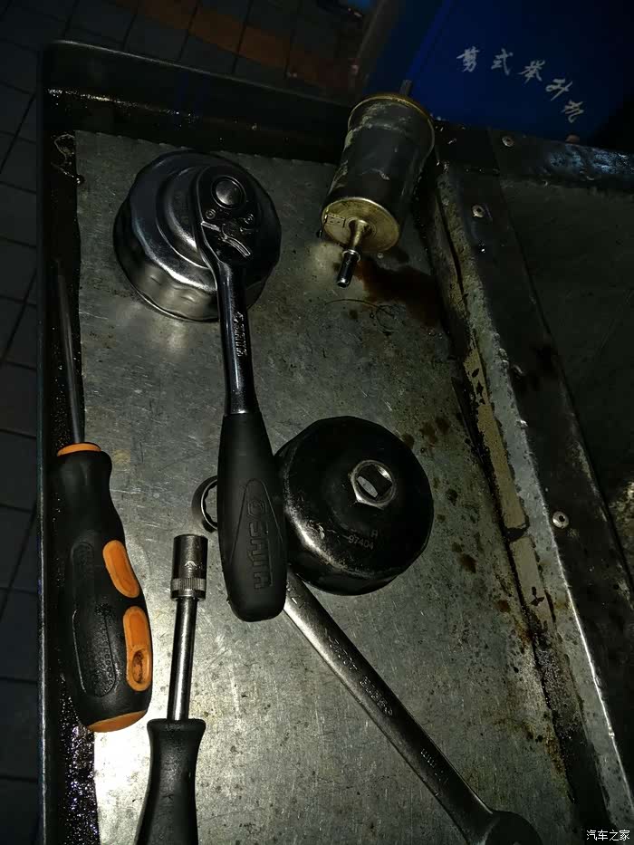 因为维修保养的车比较多,昨天没有位置预约的今天上午,闹铃响了起床洗漱赶紧出发抢位置,到了修理厂车还不少,型号预约了,以为我们车友会下午有公益活动,我排在了第一个,填完单子等待着修理工来,不一会就来了一看还是上回那个给我弄得小弟,这就放心了。他干活还是不错的我放心,因为上回我是全程看着弄完的,先检查一下轮胎,有点缺气,一会给你补上,把小虎举起来,看看你的肚皮有没有毛病,好了开始下一步,拿来工具开始拧螺母,哎呀哎呀怎么拧不开呢,哈哈,是你上回拧得太紧了,给自己挖了个坑,慢慢来吧,看你啥时候拧开,费了九牛二虎之力终于开了,放油,过了一会放干净了,还有汽油滤芯,一块都按上,拧上螺母开始加机油,这回给你升级了来个全合成的,以后不许耍驴知道么!