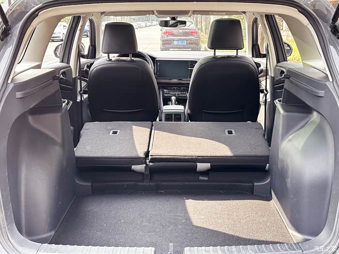 后排座椅放倒后给后备箱扩容,SUV车型的空间确实要大很多。