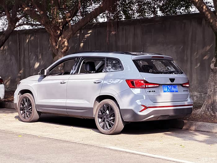 灰色的漆面这几年非常流行,加上黑色烤漆的中网、后视镜、车顶行李架等,外观给人的感觉时尚运动。