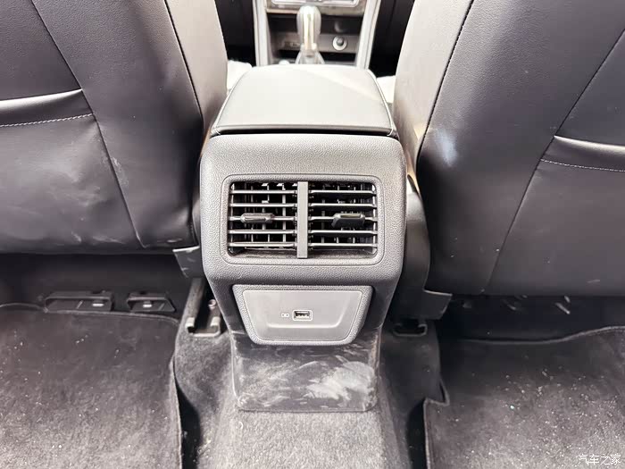 后排出风口下方是USB充电接口,方便给后排乘客的电子设备充电。