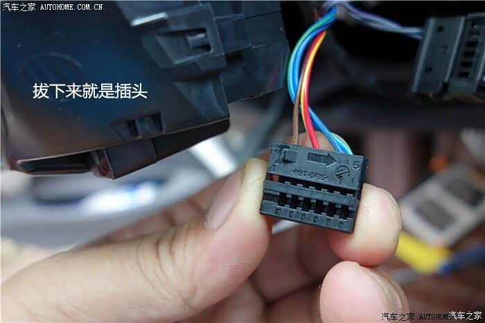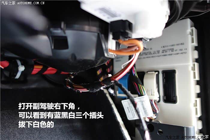 【飞线】另一头在副驾驶右边,拆掉饰面板就可以看到。插在白色插头上的5号口
