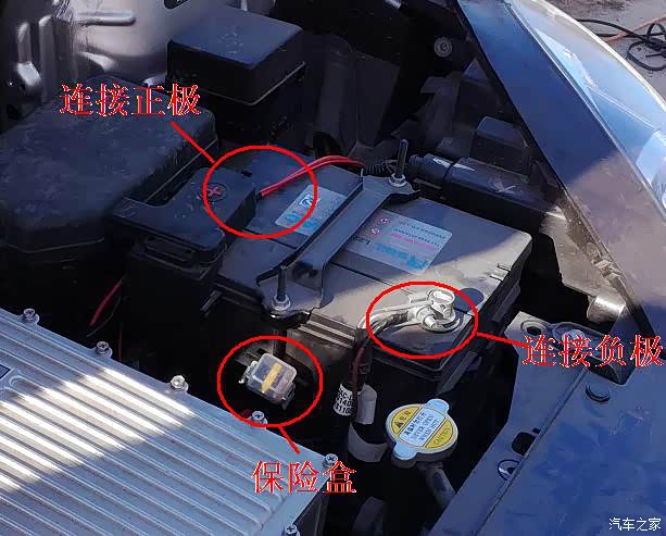 电源线的安装,分别连接车载蓄电池的正负两极。