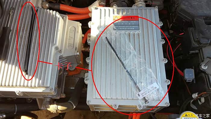 管线和油壶等相应部位都用一次性卡子固定,所有安装的部件都来自德国原厂,包括输油管、暖风管、螺钉、甚至这个卡子(油壶和取油器不是德国的,是卜师傅根据iEV5的安装空间挑选的),据说这个卡子的质量比国内的要好,不易脆裂。
