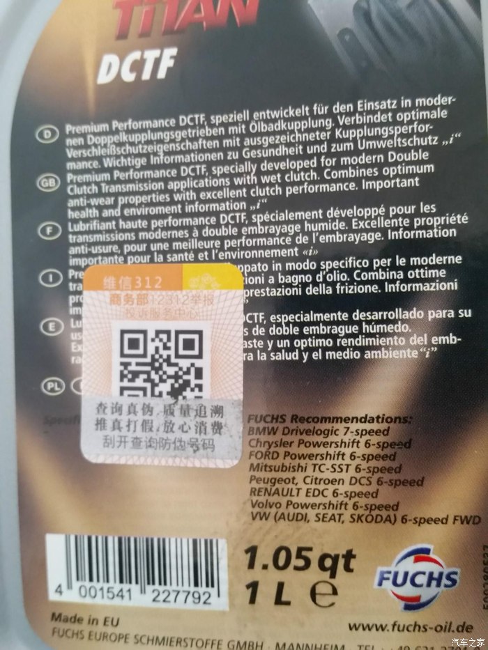 2、 之前咨询过京西某汽配城专业维修店(VOLVO论坛看到的)说除了原厂和VOLVO的变速箱油以外别的油加进去会报故障,到目前(已行驶10KM)为止,福斯油加进去未见异常。