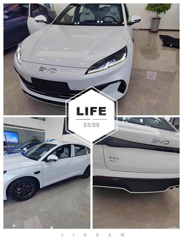 海豹06dmi的外观说实话,我觉得比秦L dmi 的外观好看一些,海豹看着年轻,时尚运动一些,而,秦L的看着略显老气。