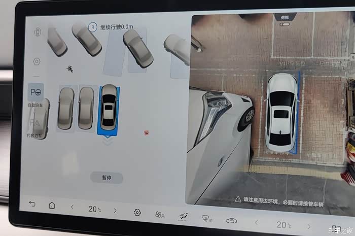 操作流程:得先按中控的自动泊车键或者喊 “小迪” 开启,然后车会搜车位。搜到后刹车停稳,点屏幕开始泊车。泊车时周围雷达会测距,屏幕上能看到蓝色波形,遇到障碍物距离近了会变红停下,安全距离内就继续泊入。适合标线清楚、周围没复杂障碍物(比如矮石墩、细电线)的车位,新手和女司机用着方便,老司机自己倒也就 1 - 2 分钟的事儿,不过自动泊车胜在省心。
