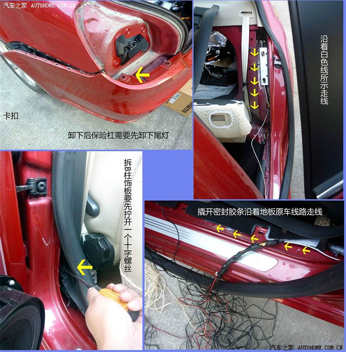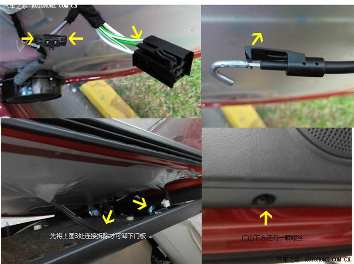第一次陪媳妇去4S店检修,我就对工作人员提出问题,门灯为啥不亮呢?人家冷冷的说,你看到的“门灯”其实是一片红塑料。是滴,我没听错,一片只能靠别车大灯反光的塑料。对于一个理工男来说,这个简直就是一种欺骗啊~,如果这两块塑料贴在车屁股上,还能算设计。贴在门灯的位置,就是坑爹,忽悠,严重的不厚道。在网上拜读了大神“shensi7”的帖子,内容详实丰富,鼓舞了我DIY的勇气,坚定了独立改灯的信心。本章将进入到DIY过程中最为艰苦的环节,拆门/装门真不是人干的活。
