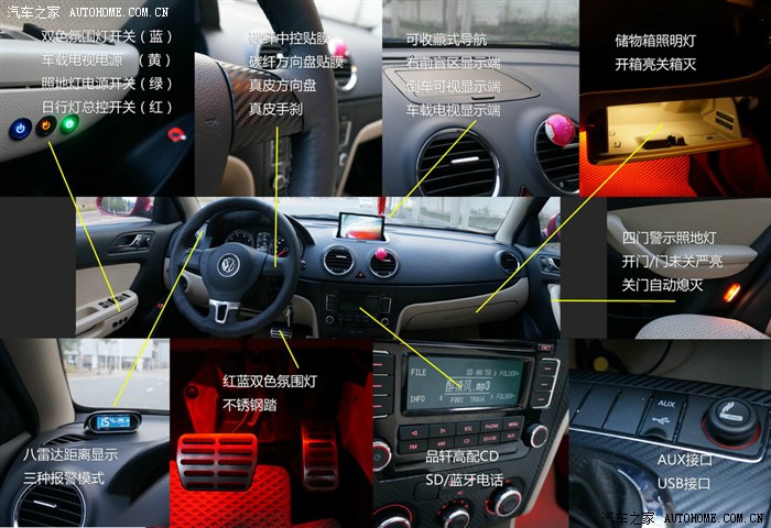 13.碳纤中控 真皮手缝方向盘 led换灯 小装饰