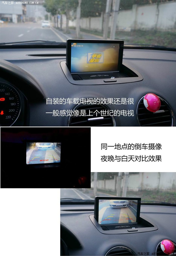 3.2.1一分钱,一分货,特价的导航,当然不会有高价的享受,本来导航自带的电视功能被无情的咔嚓了~,但是AUX视频输入仍让可以用,这个“后门”又激活了一个DIY的小小灵感,将最昂贵部件的功能发挥到极致。淘宝一套车载电视200不到,咬牙购入。安装也并不复杂,为了更好的信号将天线外露安装在右侧遮阳板前方,从A柱引线至主控内。考虑到几年后可能会更换,将主控制盒安装在方向盘下,电脑接口的 U形槽内。效果真的一般般,甚至还有点模糊的感觉,和手机视频都没得比,也就等车的时候解解闷。