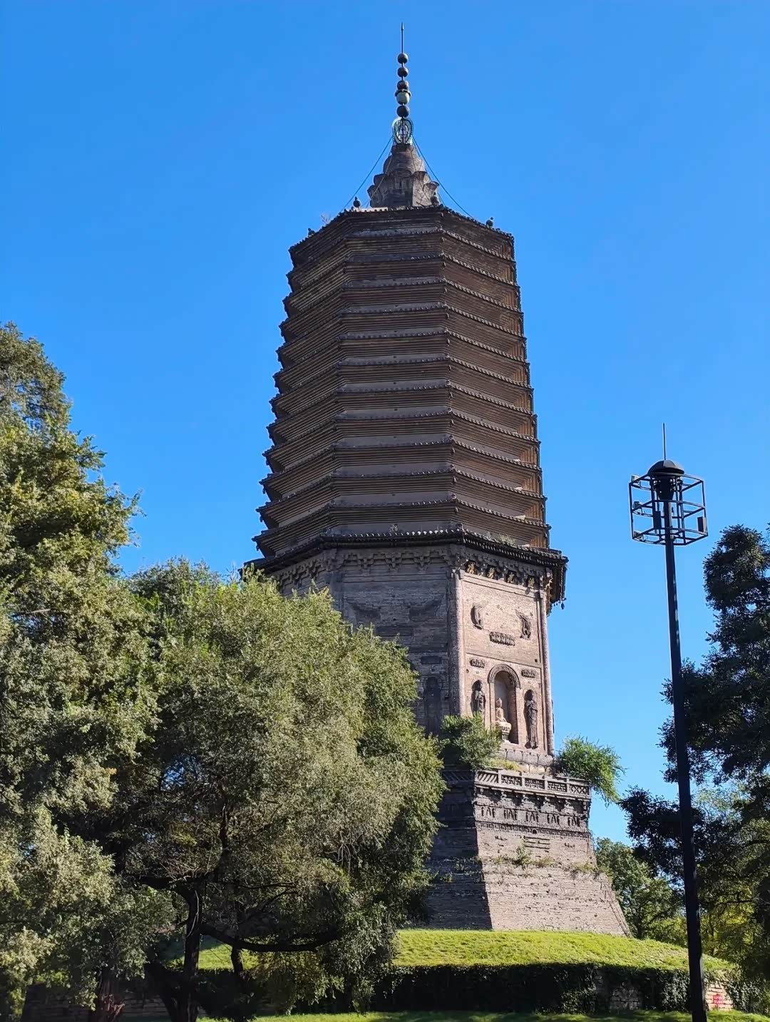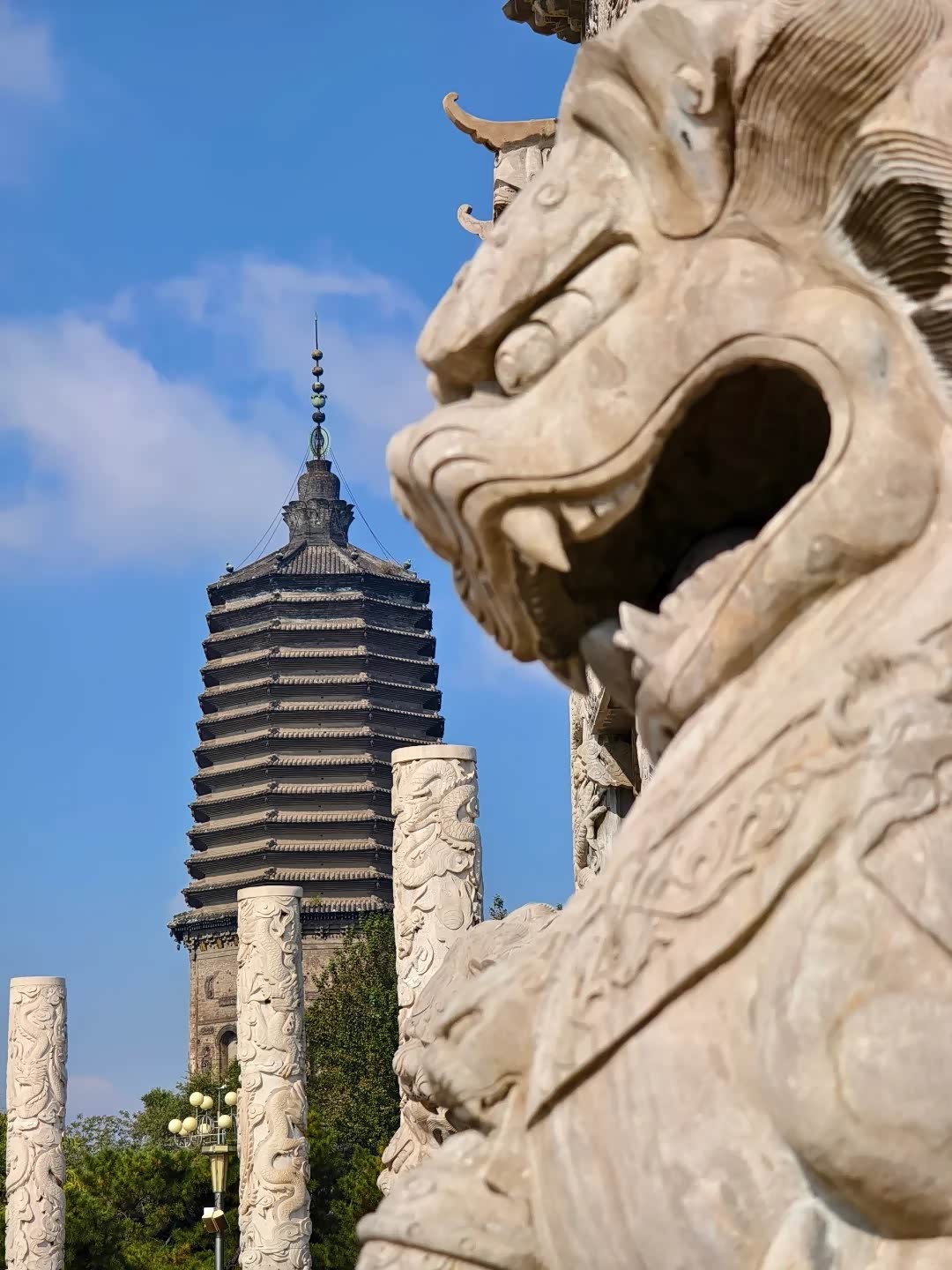 广佑寺塔,又名白塔。作为全国六大高塔之一,更是辽阳的镇城之宝。千百年间历经风雨和战火,屹立不倒,当它映入眼帘时,这座71米高的辽代佛塔确实如火箭刺破苍穹,塔身风铎在秋风中叮当作响,恍惚听见耶律德光改襄平为辽阳府时的马蹄声。走近看塔基裂缝里探出半截老树根——战火毁过七次,它却比任何王朝都活得久。