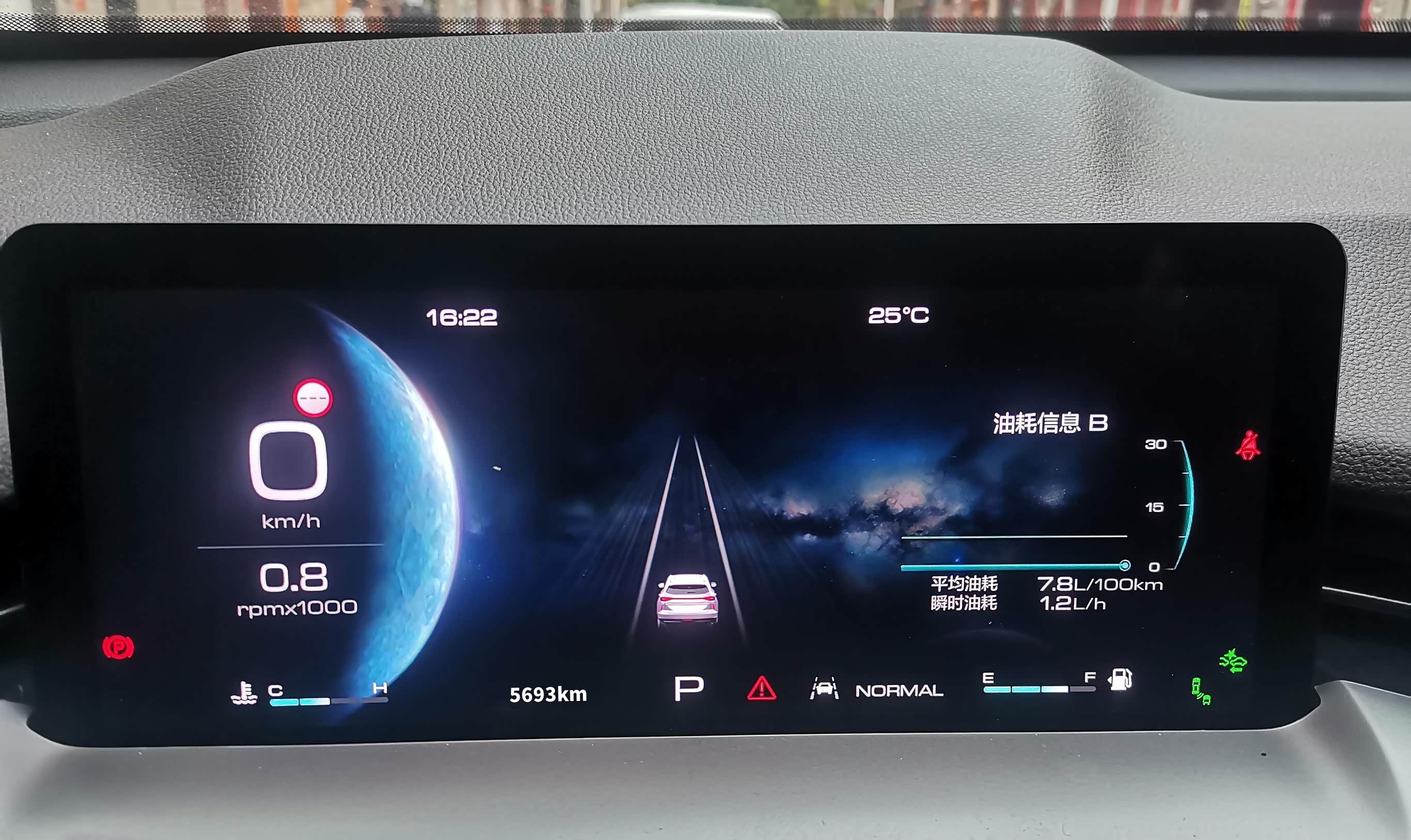 1.5T发动机在120km/h巡航时,表显油耗稳在7.8L/百公里。