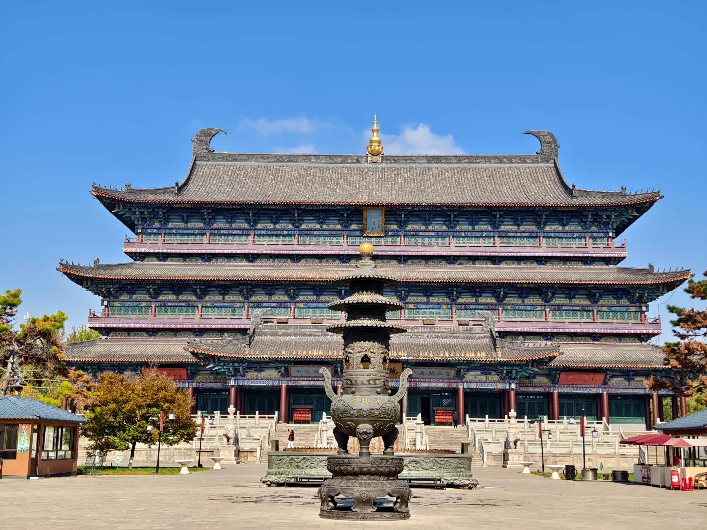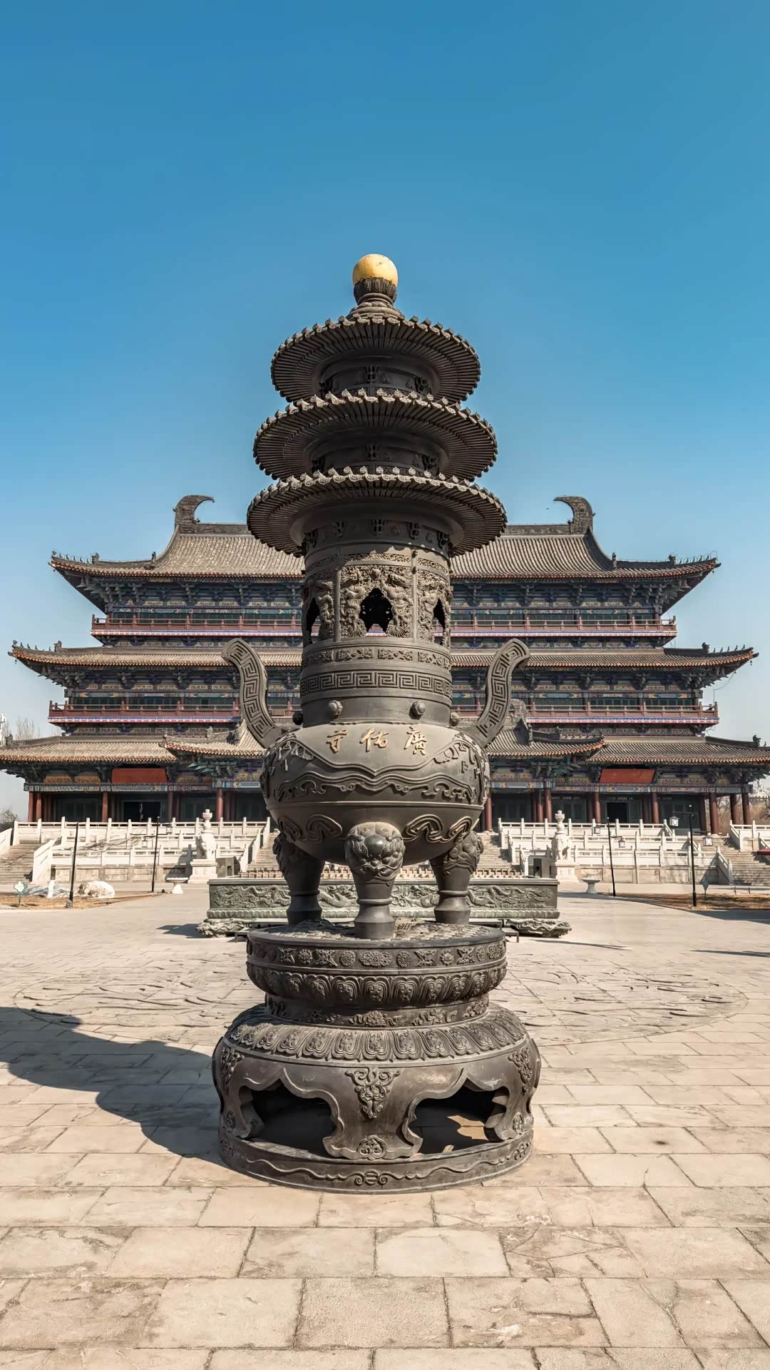 - 大雄殿前这一尊世界上最大的青铜香炉,长12米,高1.2米,宽2.9米,体量冠绝全球。