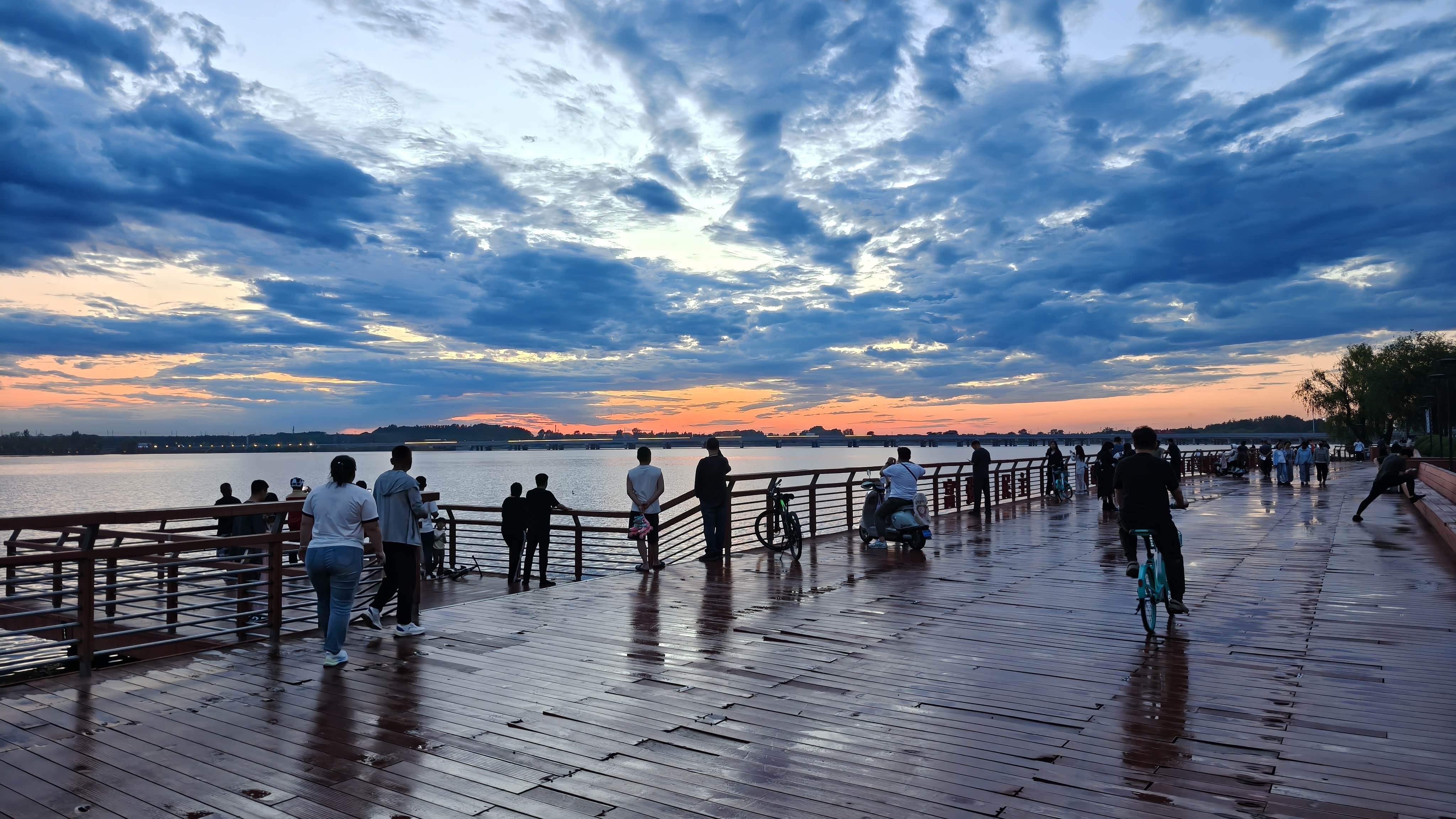 返程到家时路过丁香湖景区,落日熔金洒满湖面,美不胜收。仪表盘停在17:30,该去接孩子放学了。