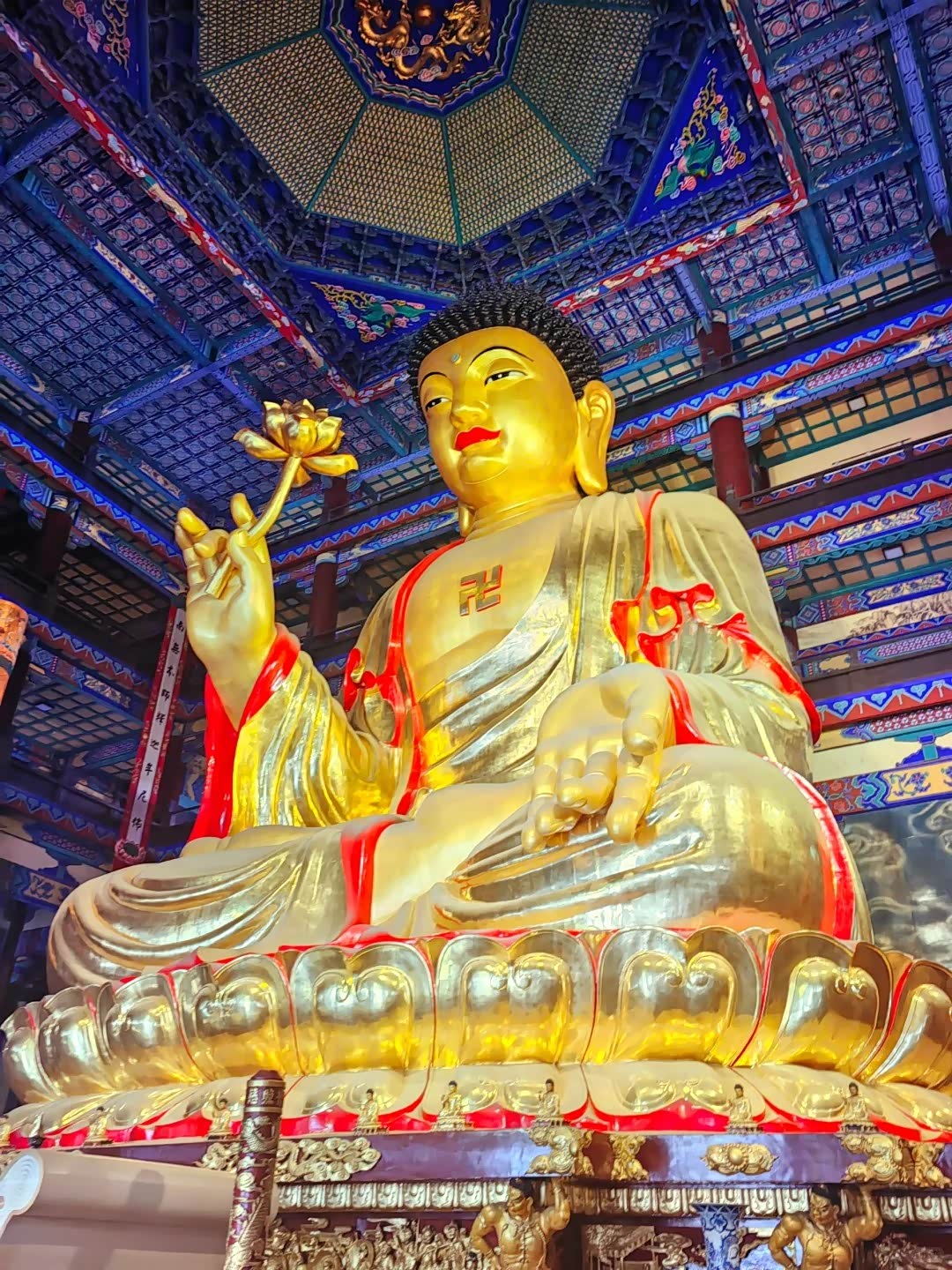 - 世界上最大的大雄宝殿,通高41.7米,换算成房屋足足有十三层楼高,堪称世界庙宇之最。