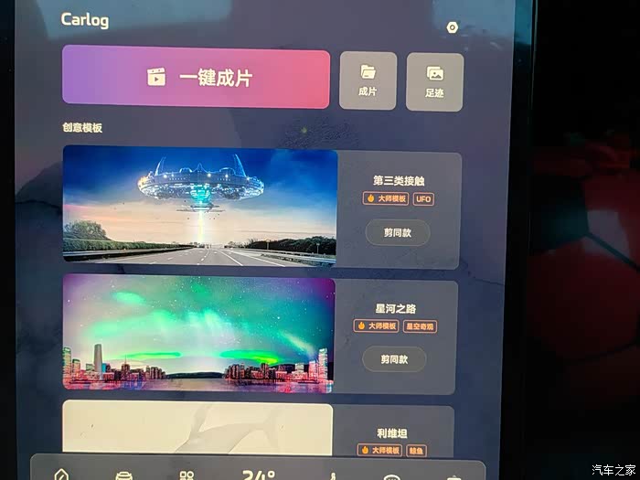 同时,智己汽车的carlog还可以一键成片,有各种现成的模板可以使用,非常方便,第三类接触、利维坦都是令人震撼的模板,各位车友们可以多去探索噢~