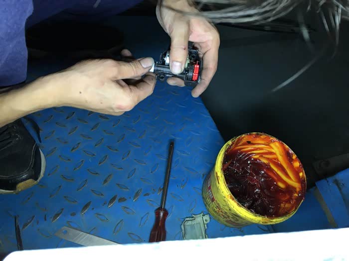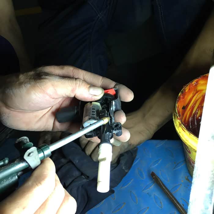 红色的这个零件不够紧的问题,导致伸收卡死。不够力。