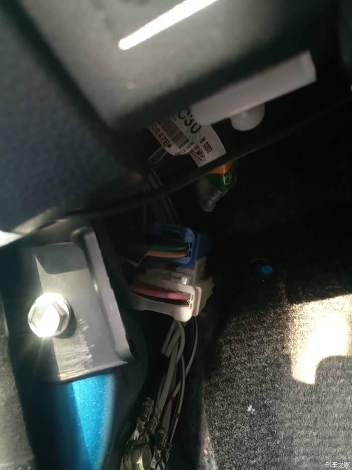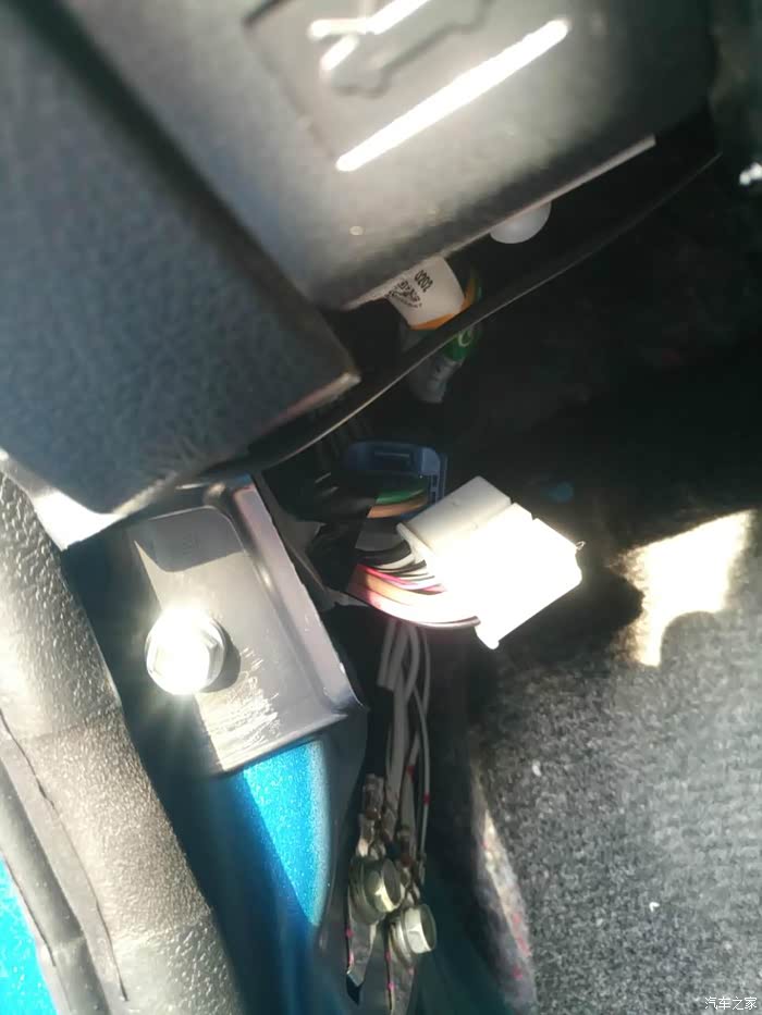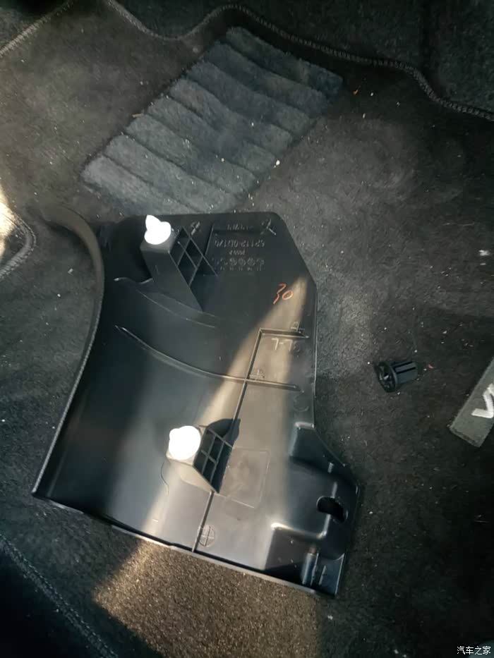 只要卸掉一颗螺丝,然后往外掰就可以看到接头了,丰田真节省,居然是塑料螺丝!