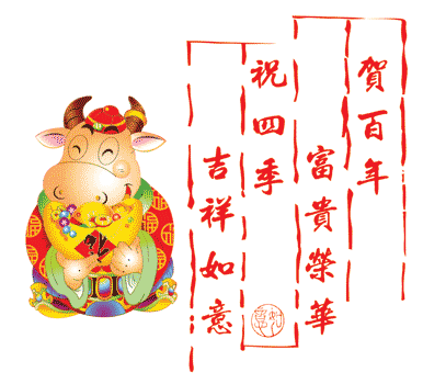 祝大家在新的一年里:牛年到,鸿运高照,牛气冲天,事事顺利,一路大发,祖国繁荣昌盛,老百姓财源广进。龙的传人,扬威世界!