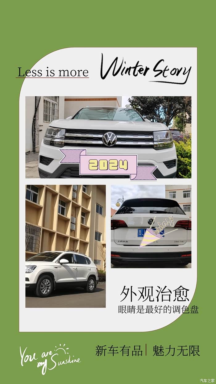 ➽大学毕业后,来到昆明春城,兜兜转转打拼了2年,17年有幸加入白领👨🏻💼这个大家族,奠定了购买爱车的基础。作为一个80后,因为家庭等各种原因尤其是经济原因,购买汽车的梦想一直未能实现。平时的出行交通工具不是火车🚞、长途大巴、高铁🚅就是坐地铁🚇、公交🚌和出租车🚕。后来有了宝宝👶🏻以后,慢慢发现这种出行方式已经不能满足家庭需要,于是经过几年的积蓄,最终在2022年10月国庆节鼓足勇气,提了人生第一个爱车——上汽大众途岳2022款风尚版。