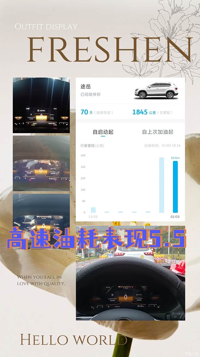 ➽目前,途岳已经陪伴我们1年10个月的时间,行驶里程17717km,爱车确实让我们几年的工作生活得到了很大的改变,也欣赏到了非常多的自然风光和靓丽风景!也期待与途岳走得更远,创造更多的奇迹,丰富未来幸福美满的生活。