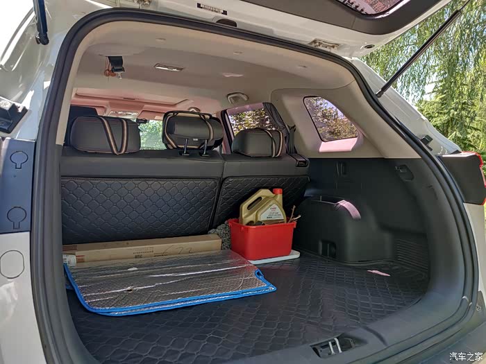 宽敞的后备箱,后排座椅靠背放倒可以秒变一张双人大床