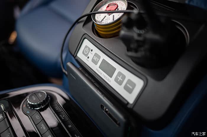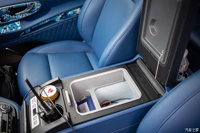 最牛的是这里。因为空间单,所以直接集成了一个冰箱在这里。上车的时候打开,然后放点饮料。夏天开起来不要太爽。