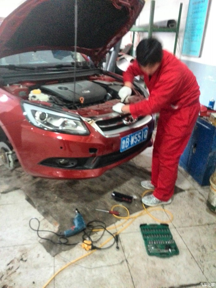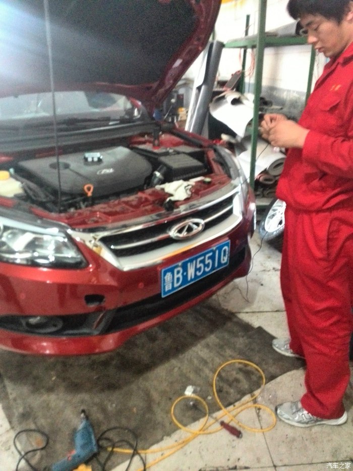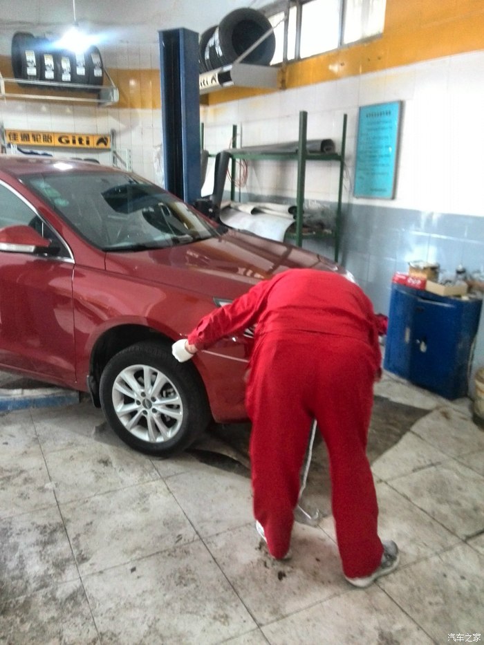 不愧是老牌装潢店 师傅们只是看了看产品 直接就开搞了 车子上架子 车牌就不挡了 说实话 青岛这边看到的艾7也实在不多