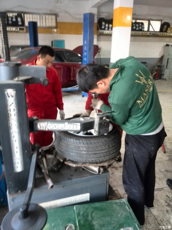 本来想让师傅把轮胎扒下来再装上传感器 可是师傅信心满满 咱实在不好意思多说了 于是师傅们配合起来