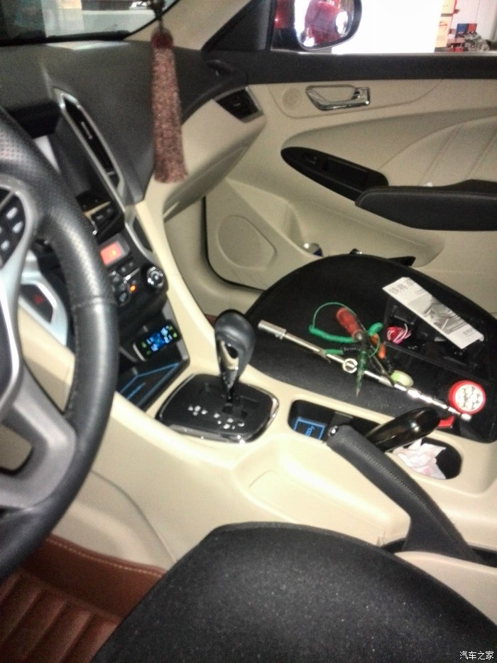 照片实在不清楚 不过那个插在点烟器上的就是显示器 车里面不用不嫌 无线传输的 特意没要那种放在中控台上的显示器 因为有个雷达的小屏幕 再加上胎压监测 实在是有点多 雷达的屏幕忘记拍了 反正就是盒子上的那种 小小的 这个胎压监测装好了之后 师傅挨个把轮胎再充气 放气 进行匹配 然后再次充气到2.5 屏幕显示2.4 差0.1不到 因为充气表上的胎压增长和屏幕稍稍不同步 不是正好差0.1 师傅说已经算是比较准确得了 我也不在乎那点 因为主要是差多了补气用 再就是爆胎及时反应 那点误差无所谓