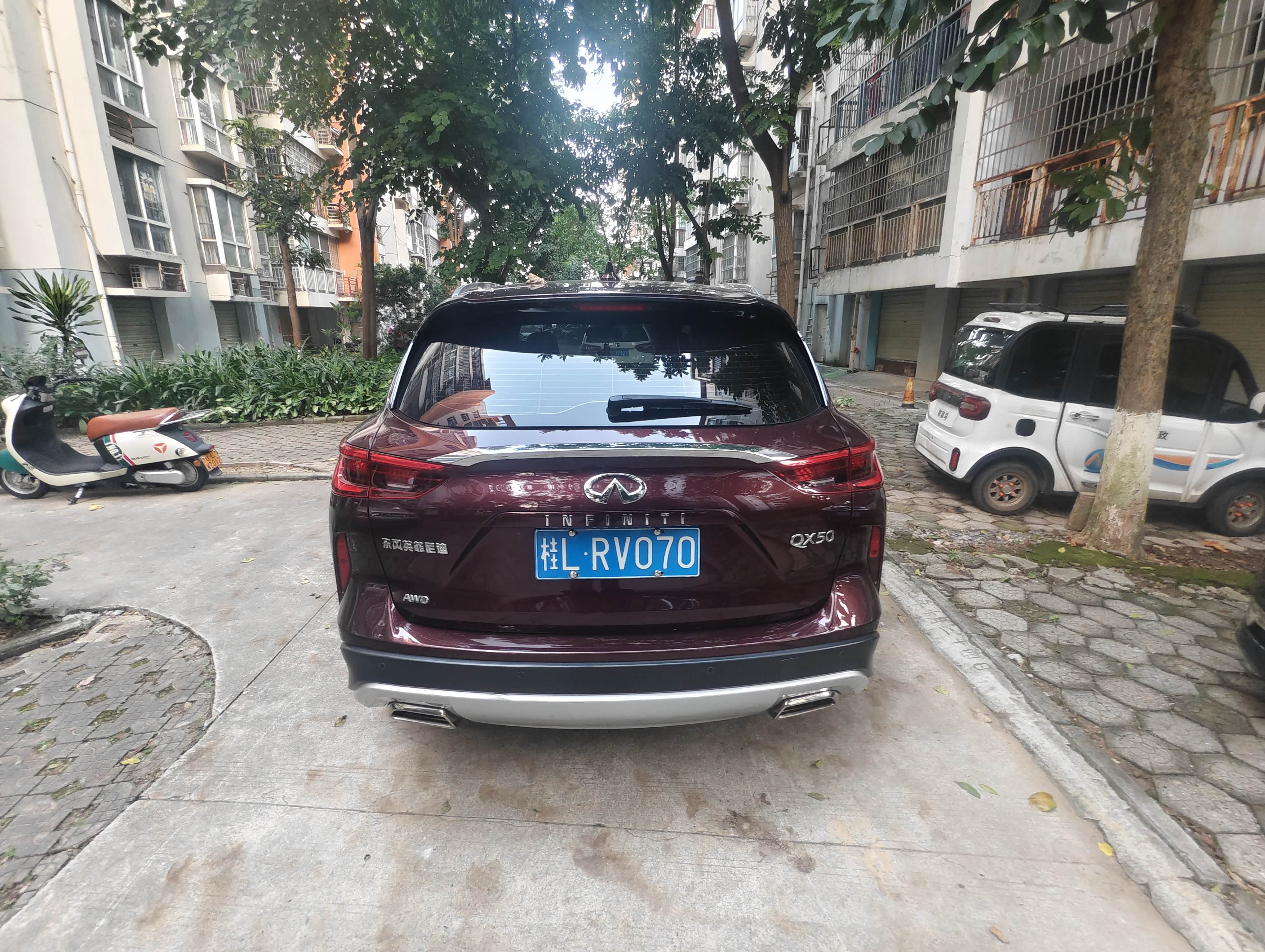 QX50后备箱空间怎么样,一家五口出行是否够用?自从提车英菲尼迪QX50之后每个节假日我们全家都没闲着,开着这台车除了吃就是逛潇洒啊。虽说它不是越野SUV但底盘高动力足还是四驱SUV,即便是跑个坑洼山路来说问题不大刚好适合家庭代步出行。但全家老少五口人一辆车,车内空间的宽敞度就显得尤为重要。不过我这台车的车长超过4.7米算是接近于中级车的长度,父母带着孩子坐在第二排完全没有蜷腿顶头拥挤感空间蛮宽敞的。而至于储物空间也够用,十一旅游我们全家的物资全靠它后备箱以保证我们出行无储物之忧
