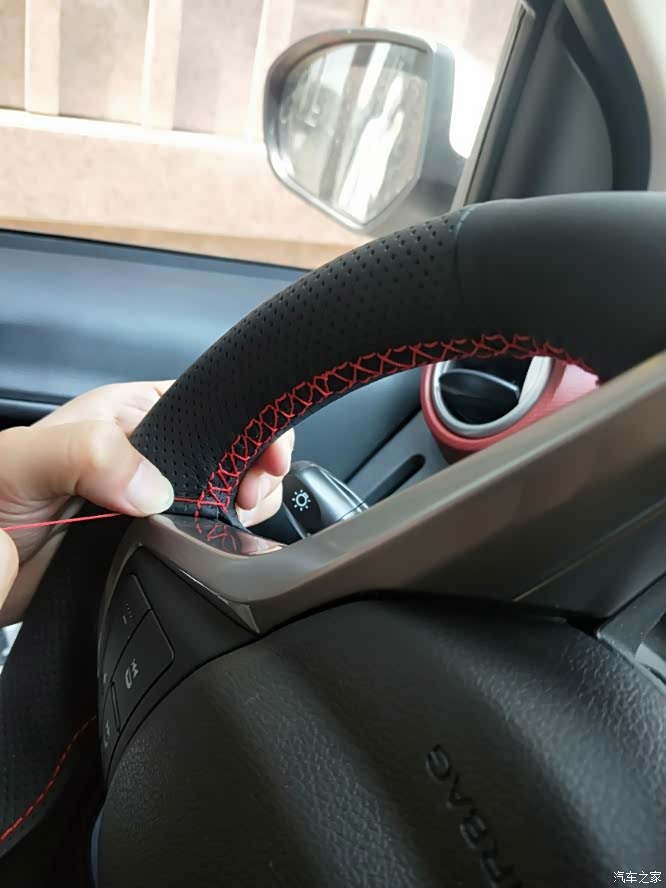 拿到车之后立马去上了牌,上完牌之后就开始各种鼓捣。方向盘塑料感太强,自己动手做皮套。