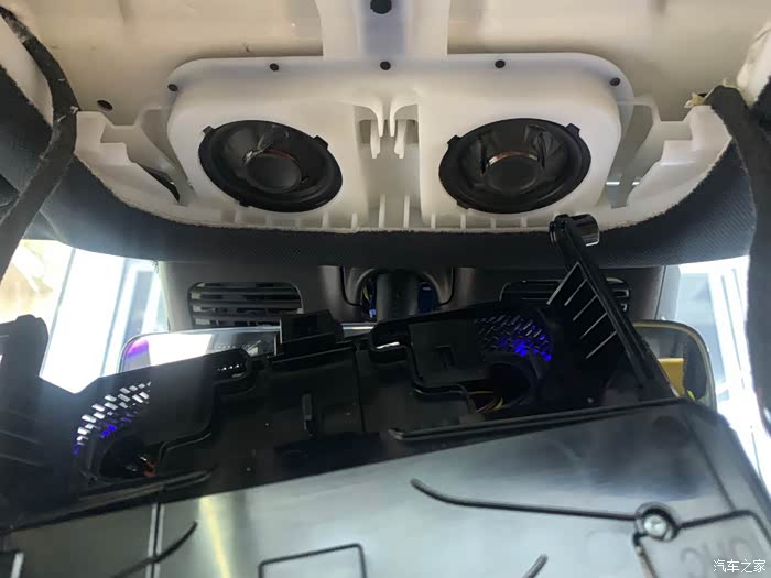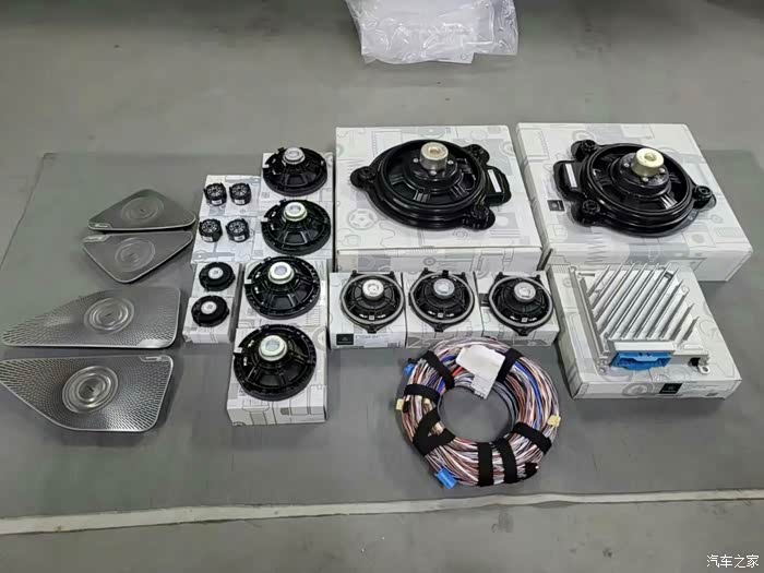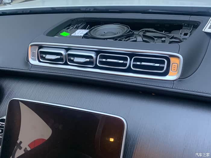 特别值得一提,原车主驾驶脚底低音喇叭就是个空的塑料壳子,新款S级相对于老款,眼镜盒还多了两个高音喇叭,710瓦的功放位于后备箱
