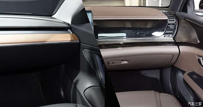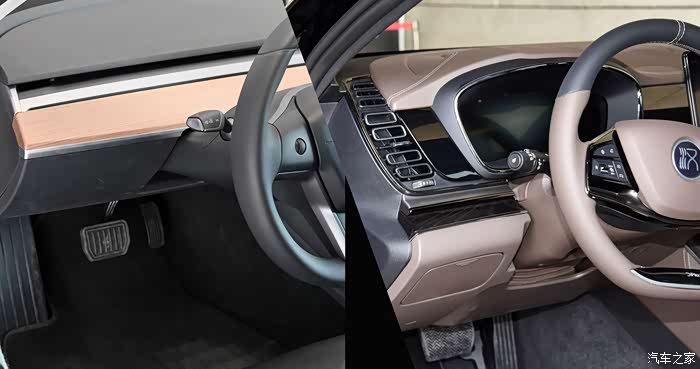 汉EV则更有豪华家用车的感觉,大量采用的木纹饰板和皮革饰板,营造出了不错的豪华感。