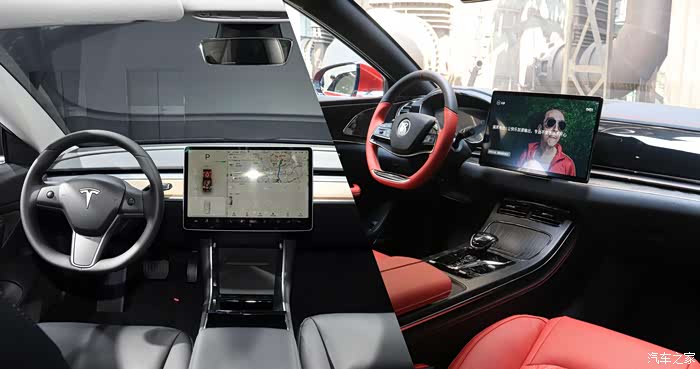在内饰上,两者都采用了超大中控液晶屏的设计,汉EV入门款的可旋转中控屏为10.58英寸,特斯拉Model 3的中控屏为15英寸,两者的大部分的车内操控都可以通过液晶屏完成,赋予了车子超强的科技质感。