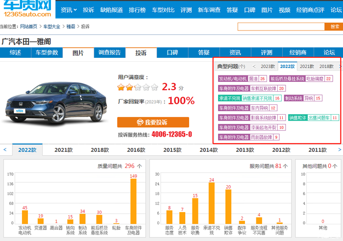 行驶了约5万多公里,行驶时后排有异响,80kM/h以上异响严重,然后去4s店检查,发现车辆存在这个问题,4S店说车辆的两个后轮胎内侧异常磨损,内侧高低不平,解决的办法就是换轮胎,然后检查了一下轮胎的花纹,花纹很深,没有达到轮胎的使用寿命,后来去车质网等网站查询发现这款车存在大量轮胎吃胎的问题,而且4S店说后轮倾角不可调,所以做了四轮定位没用,现在开起来轮胎一直有异响,非常头疼,苦不堪言。车质网投诉中好多车友都有投诉反馈,看样子不是个例。
