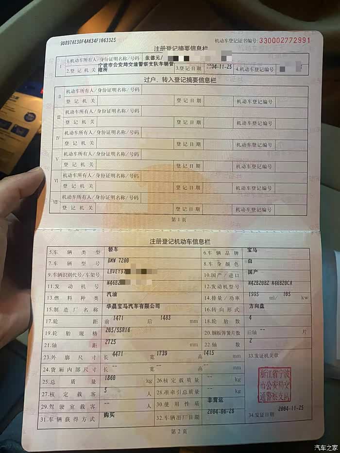 车子是原来工作的4S店收进来,以为银行从业大叔的一手车。大叔04年购入该车,全部办下来50万多,在当时可以买宁波市中心2套房子。当时听闻真的觉得买车不如买房。哈哈!